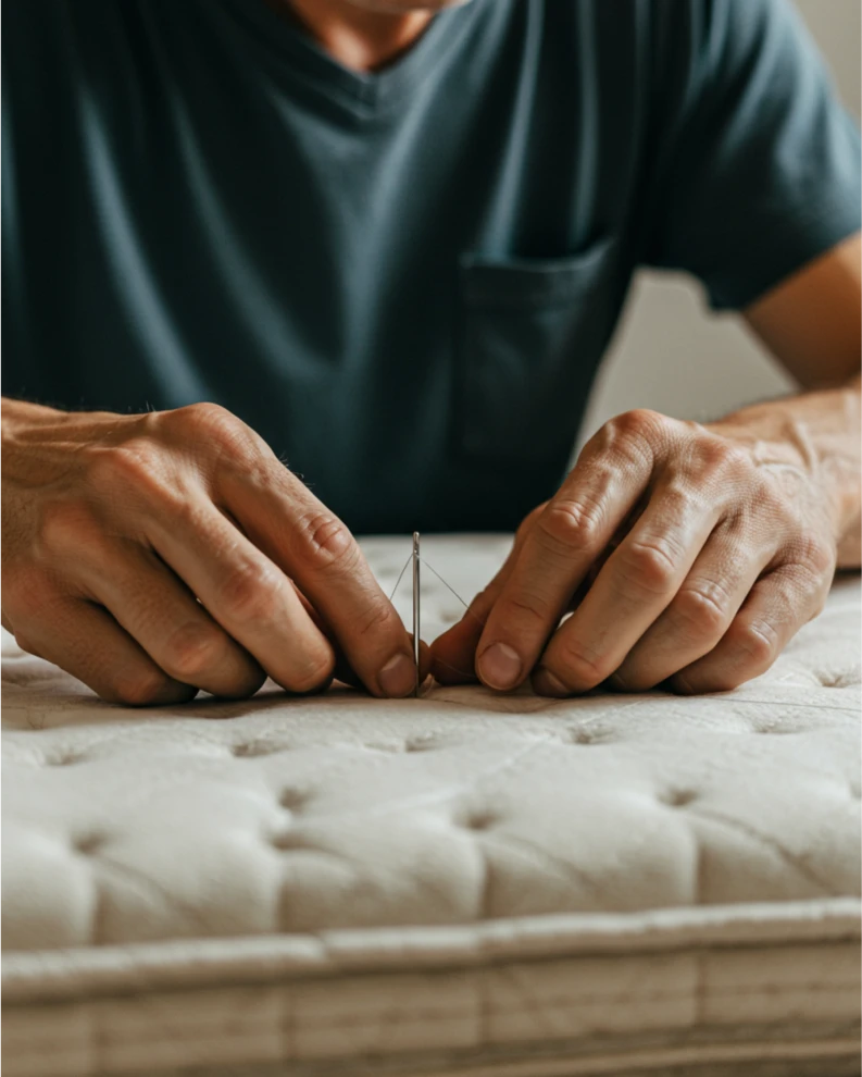 Em uma visita de diagnóstico 100% gratuita, nossa equipe examina o estado do seu colchão e lhe informa sobre a viabilidade da reforma.